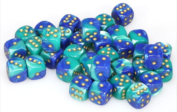 Gemini Blue-Teal/Gold 12mm d6 Dice Block